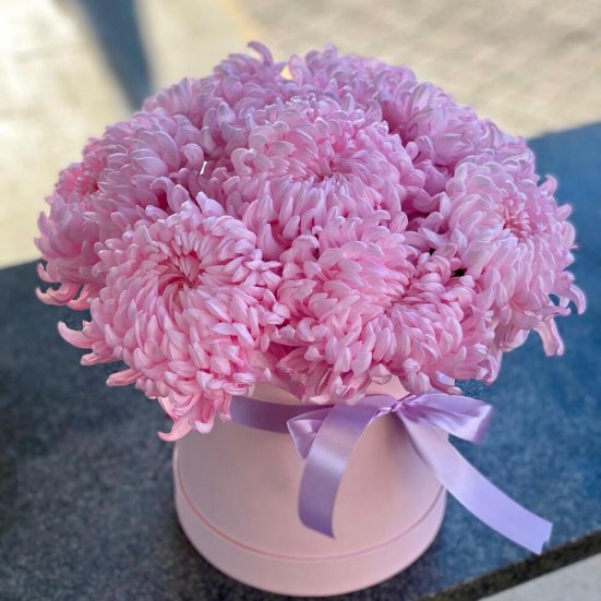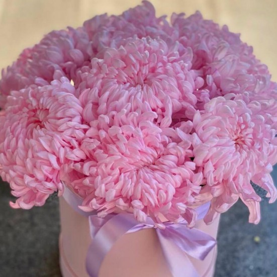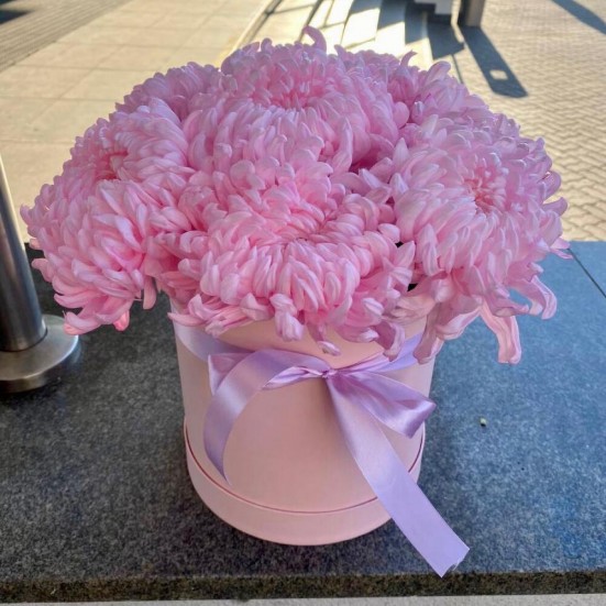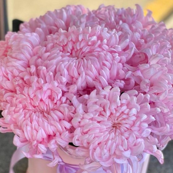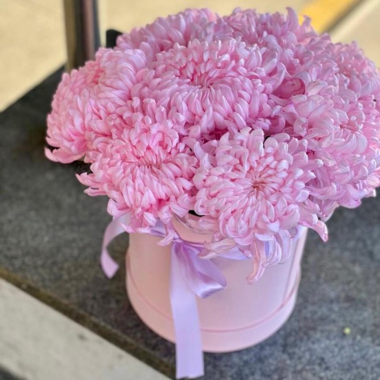 9 розовых хризантемы в коробочке в Ступино