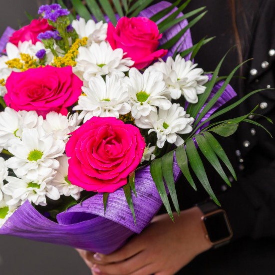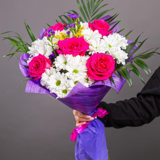Букет из 5 роз и хризантем в Ступино