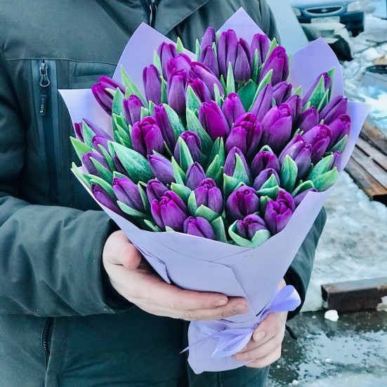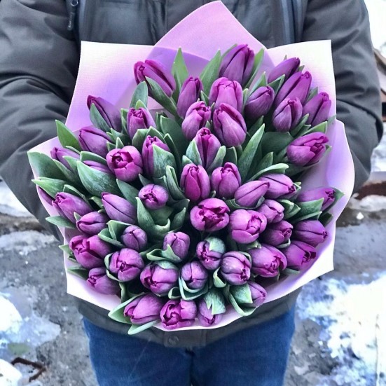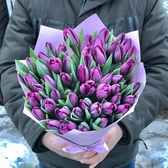Букет из 51 фиолетового тюльпана в Ступино