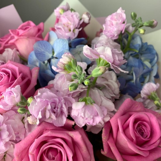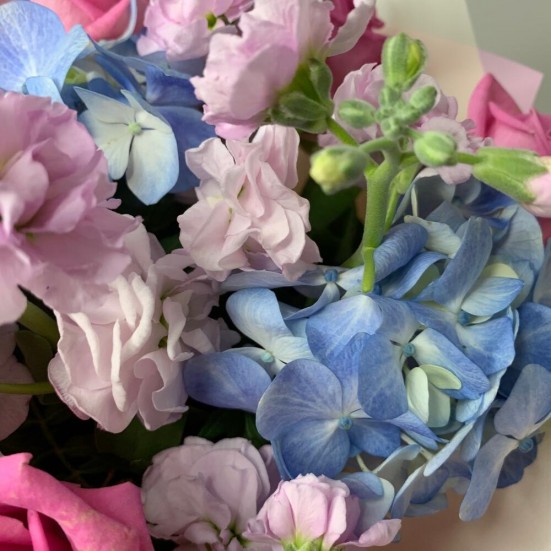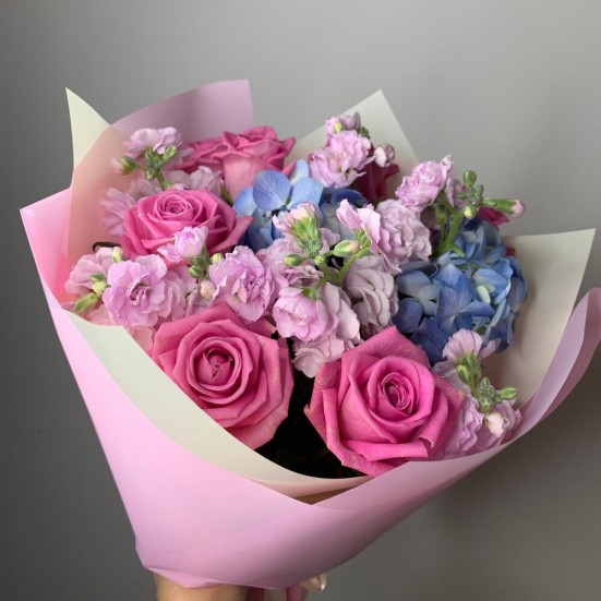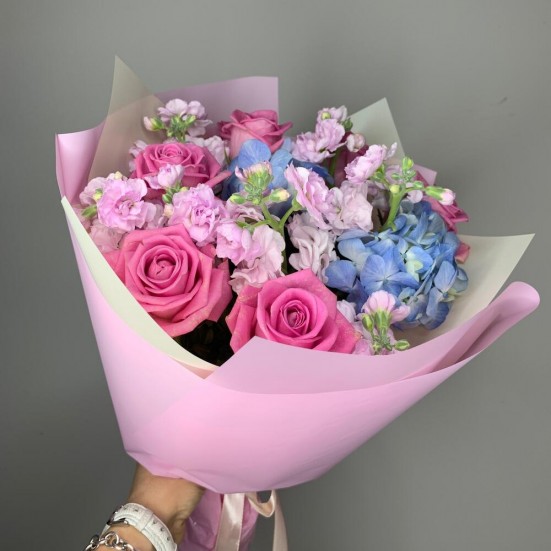Букет с голубой гортензией и розами в Ступино