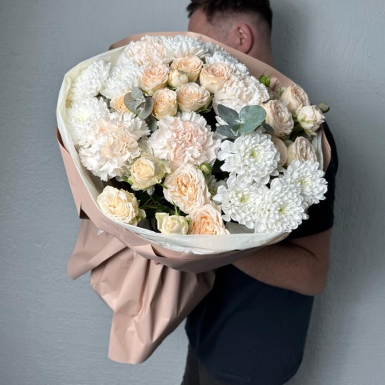 Букет из пионовидных роз и хризантем в Ступино