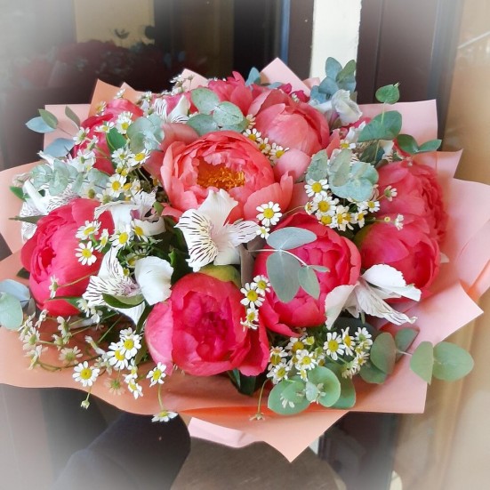 Букет «Пионы и ромашки» в Ступино