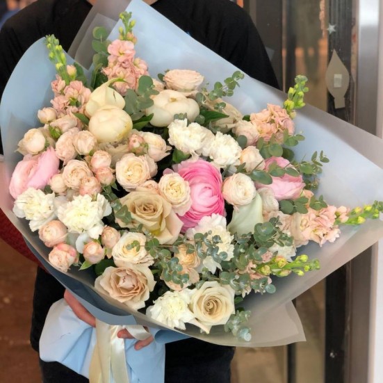 Букет «Пионовидные розы и ранункулюсы» в Ступино