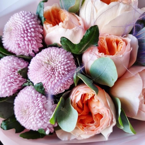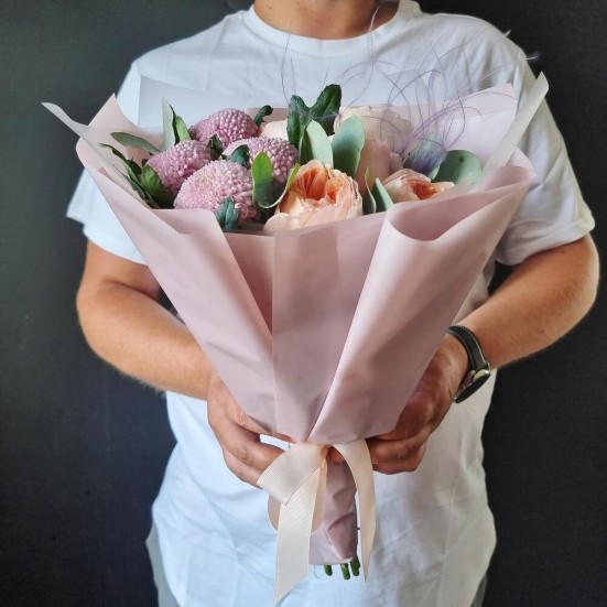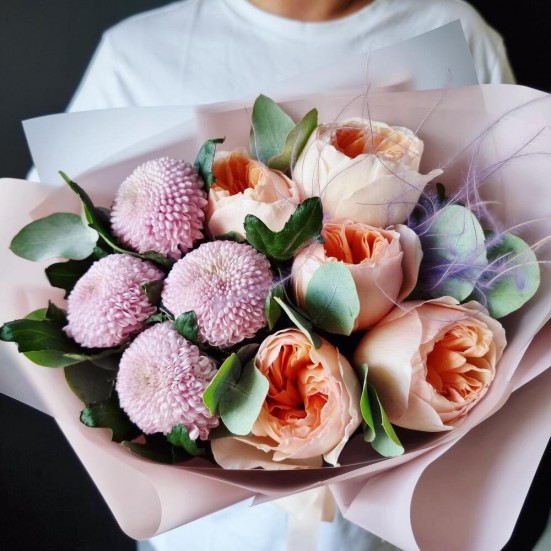 Букет «Пионы и хризантема»