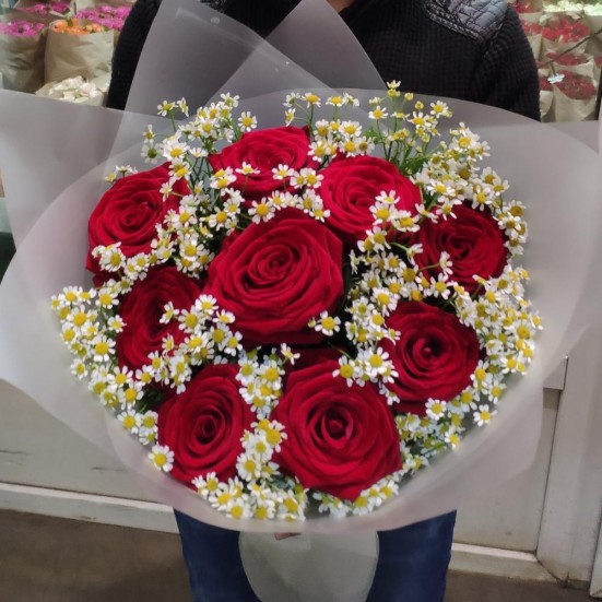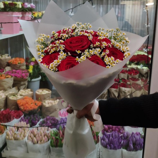 Заказывал букет бордовых роз маме на юбилей. Сам на торжество приехать не смог, а цветы доставили точно в указанное время.