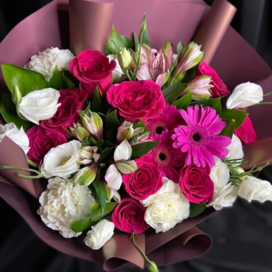 Заказывал букет бордовых роз маме на юбилей. Сам на торжество приехать не смог, а цветы доставили точно в указанное время.