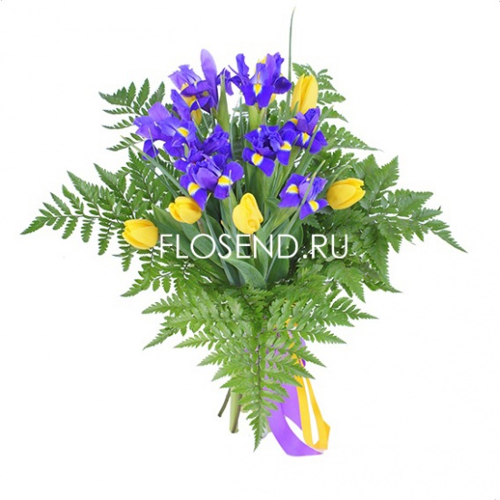 Букет желтые тюльпаны и ирисы