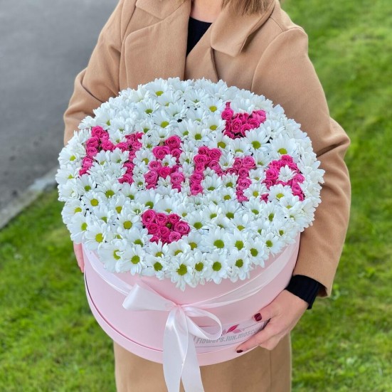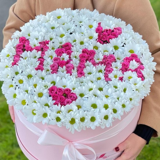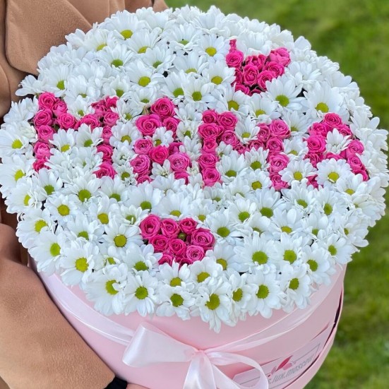 Хризантема ромашковая и роза в коробке Маме в Ступино