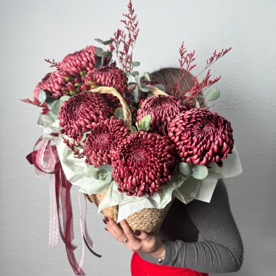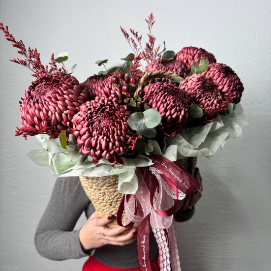 Заказывал букет бордовых роз маме на юбилей. Сам на торжество приехать не смог, а цветы доставили точно в указанное время.