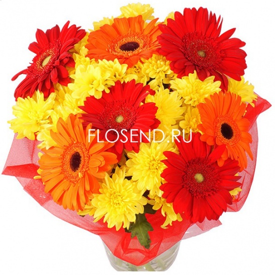 Букет из красных гербер и желтых хризантем в Ступино